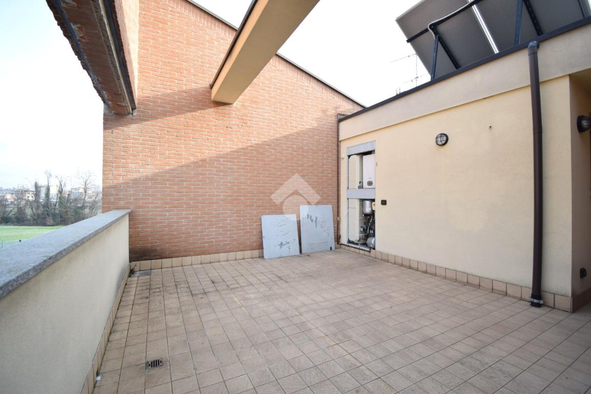 Locale sottotetto open space con sfogo su un ampio terrazzo, ideale per momenti di relax all'aperto.