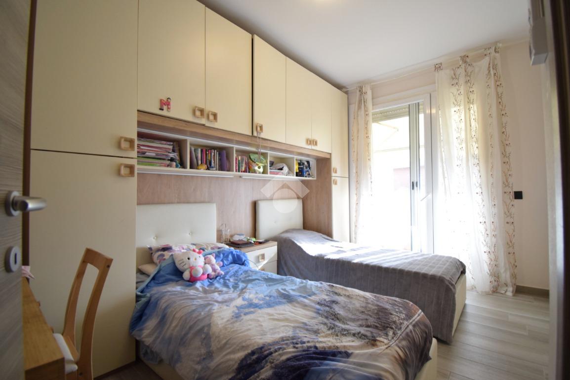 Al primo piano è presente la zona notte composta dalla camera matrimoniale, con cabina armadio e comodo balcone, e da due luminose camerette che hanno sfogo su un secondo balcone. Bagno cieco con boccia.